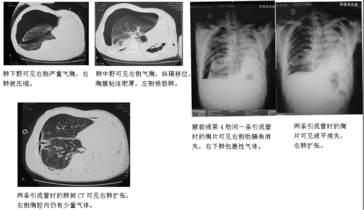 2 结果2.1 临床情况 本研究共4种疾病6例,其中肺癌3例,乳腺癌1例,胃癌1例,肉瘤1例。6例中,男4例,女2例,年龄50~85岁,糖尿病1例,高血压合并糖尿病1例。6例中,胸腔积液4例,腹腔积液2例,积液细胞学诊断6例。所有患者均接受贝伐单抗腔内输注治疗胸腔积液和腹水。其中应用传统药物(顺铂、香菇多糖)失败2例,首次使用贝伐珠单抗胸腹腔灌注4例。6例患者中,4例灌注前未接受全身治疗;1例胸腔滴注顺铂联合全身化疗失败后接受贝伐珠单抗滴注治疗;1例为间歇性口服靶向治疗。2.2 疗效 6例恶性胸腔积液患者经贝伐珠单抗腔内灌注治疗,积液疗效100%,其中CR 1例,PR 3例,SD 2例。平均发病时间为5天。除2例PFS分别为2个月和7个月的死亡患者外,随访至2013年3月15日,其余4例PFS均未达到。总体疗效 除1例2个月后出现PD外,其余5例均达到疾病控制,其中PR 3例,SD 2例。除1例肠粘连外,6例患者均未发生相关副作用。3 讨论 恶性胸腹水的主要机制是:肿瘤直接侵袭和伴随炎症损伤毛细血管内皮细胞,增加通透性;肺不张的肿瘤压迫导致胸膜腔负压增加;晚期低蛋白血症导致胸腹部肿胀压降低,或肿瘤在血管、淋巴管等处栓塞和转移,可导致胸腹水的产生[8、9]。随着恶性胸腔积液的研究进展,一些新的研究 肺不张的肿瘤压迫导致胸膜腔负压增加;晚期低蛋白血症导致胸腹部肿胀压降低,或肿瘤在血管、淋巴管等处栓塞和转移,可导致胸腹水的产生[8、9]。随着恶性胸腔积液的研究进展,一些新的研究 肺不张的肿瘤压迫导致胸膜腔负压增加;晚期低蛋白血症导致胸腹部肿胀压降低,或肿瘤在血管、淋巴管等处栓塞和转移,可导致胸腹水的产生[8、9]。随着恶性胸腔积液的研究进展,一些新的研究