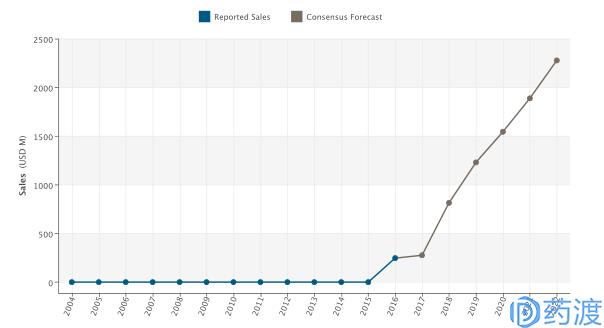 图5:Selexipag结构及其销售情况(Cortellis数据,下同)